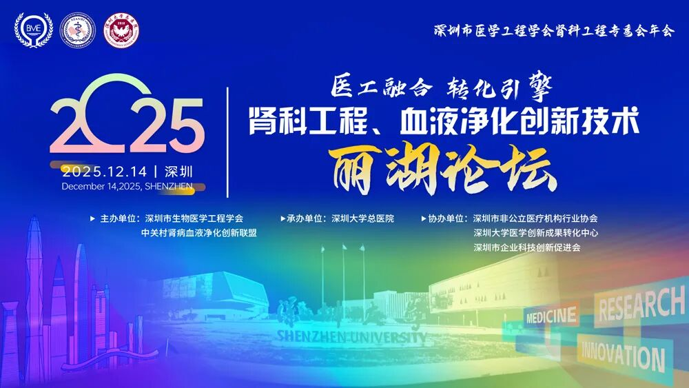 2025年12月14日上午,由中关村肾病血液净化创新联盟、深圳市生物医学工程学会联合主办,深圳大学总医院承办的“血液净化创新技术丽湖论坛(第二届)暨2025年深圳市生物医学工程学会肾科工程专委会年会”在深圳召开。