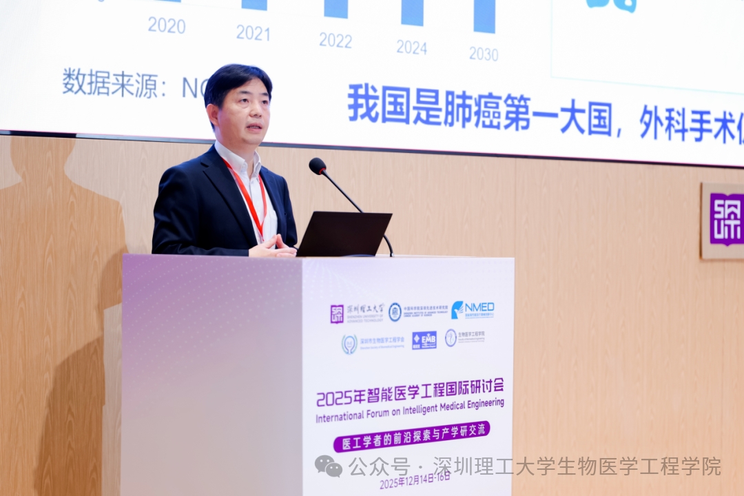 12月14-16日,2025年智能医学工程国际研讨会在深圳理工大学举行。会议以“医工学者的前沿探索与产学研交流”为主题,由深圳理工大学、中国科学院深圳先进技术研究院、国家高性能医疗器械创新中心联合主办,深圳市生物医学工程学会、IEEE EMBS Shenzhen Chapter协办,深圳理工大学生物医学工程学院承办。来自中国、澳大利亚、韩国、美国、日本、新加坡、英国40余所高校、科研院所的60余位顶尖学者和400余名青年学子与创新人才齐聚深圳理工大学,开启“医工融合”年度思想盛宴。